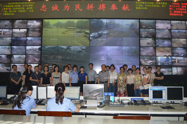 接著大家來到鐫刻有“忠誠為民、拼搏奉獻”字樣的全市交通路況顯示屏前。大屏幕上顯示著鄭州市各個主要單位、部位和重要道路交叉路口的即時信息,具有GPS定位功能的警車在不停地移動,視頻畫面依序切換,“原來每時每刻都有幾百輛警車在街面巡邏,每個路口都有監控。看樣子,鄭州市的安保工作還是有保障的,以后更要規范自己的言行,遵守交通規則”大家很是感慨。